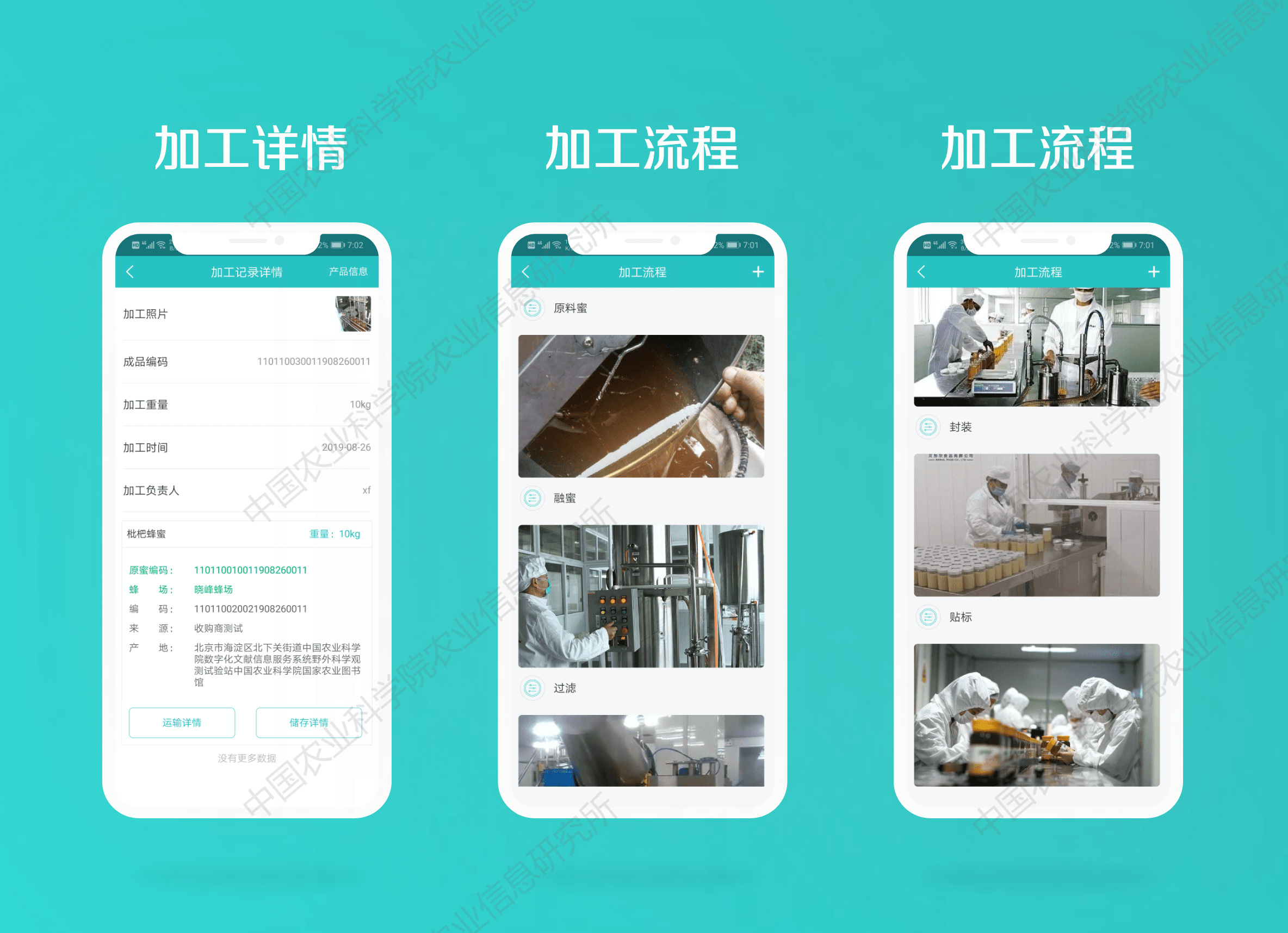 由中国农业科学院蜜蜂研究所和农业信息研究所共同研制,为蜂产品的品质安全提供有效监测方法,集成物联网气象站和高清视频监控站,已完成蜂产品环境信息、蜂场养殖、病虫防治、蜂蜜采收、贮运、组批、加工等环节的全流程追溯。一物一码,防伪防篡改,打通养蜂者、收购商、加工厂和消费者之间的信息鸿沟,提高全产业链信息透明度,极大地提升优质蜂产品品牌效应和宣传力度,减少假冒伪劣产品流通。