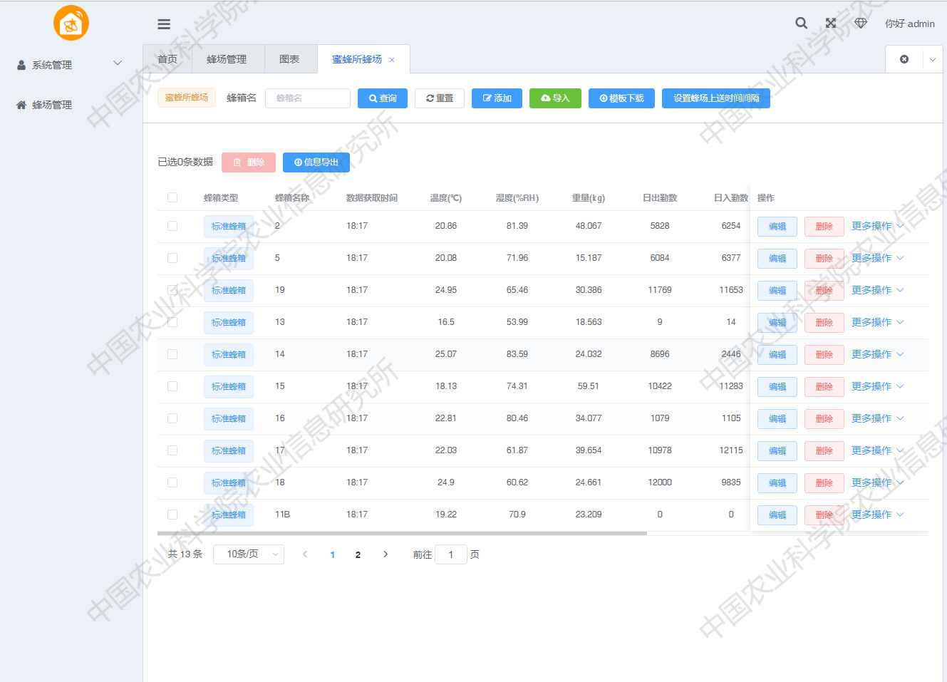 应用于蜂产业的中大型企业、合作社等经营主体管理相关蜂场、蜂箱及数据信息。