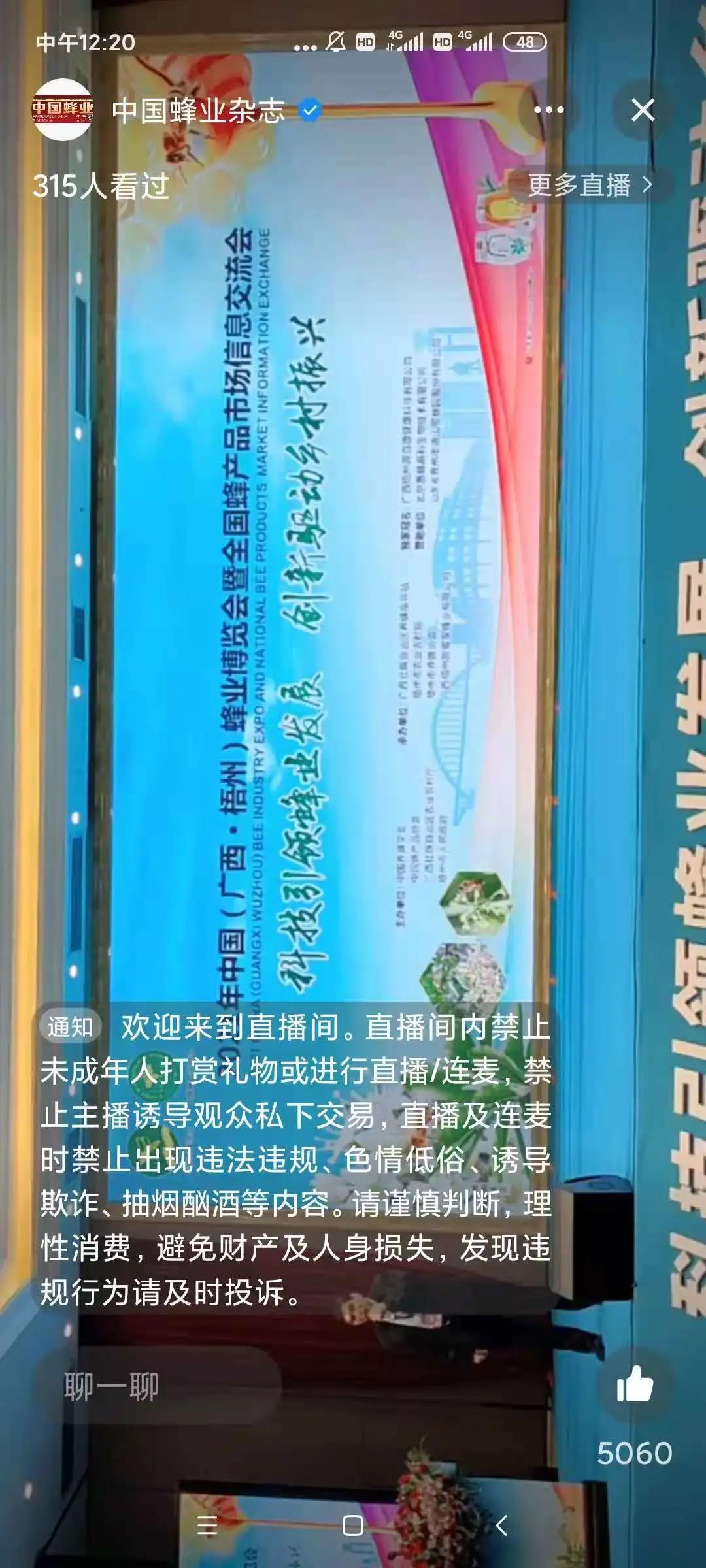 此次会议线上直播分别通过中国农业科学院农业信息研究所的云犀和快手直播平台、《中国蜂业》杂志微信视频号推送,今日直播观看人次近2000人次。明日上午主要活动包括蜂产业助力乡村振兴报告会、蜂业高品质发展论坛、闭幕式、蜂业博览会展销活动,欢迎大家继续关注蜂业“两会”最新动态!